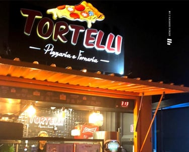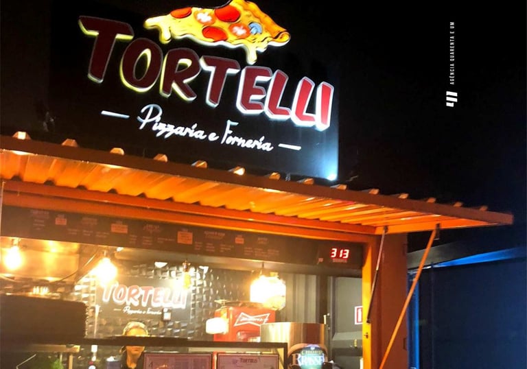Entregamos um projeto que deu orgulho de fazer. LOGO e fachada da Tortelli Pizzarias, na praça de alimentação Cadore, no Bacacheri.